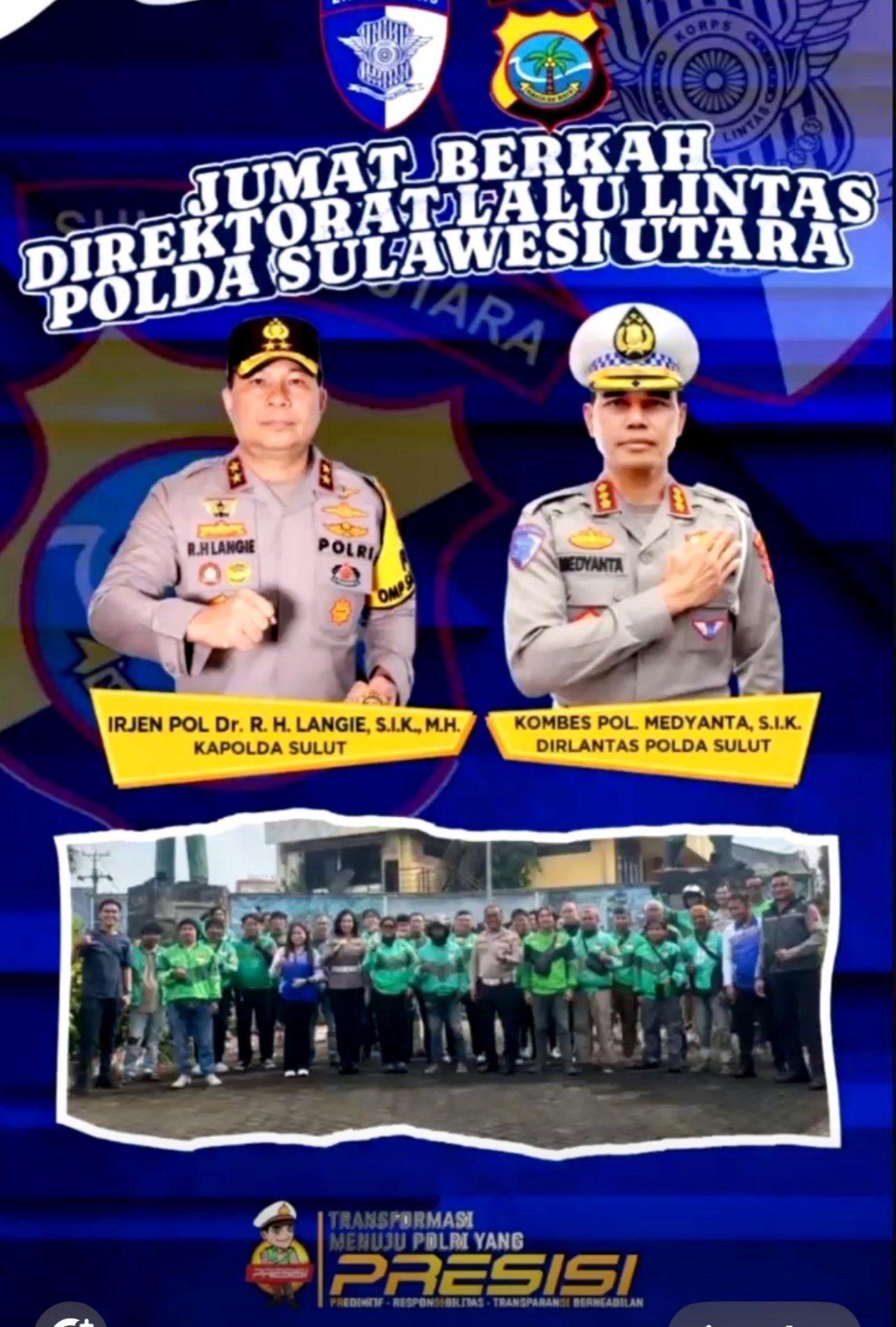 Lensa Nusantara News || Manado-Direktorat Lalu Lintas (Ditlantas) Polda Sulawesi Utara,kembali menggelar aksi sosial “Jumat Berkah”.untuk memperkuat kedekatan dengan masyarakat,kegiatan kali ini digelar di area seputaran Patung Wolter Monginsidi jalan Piere Tendean,Jumat (30/01/2026) Aksi ini secara khusus menyasar pengemudi ojek online (ojol) serta masyarakat yang melintas. Kegiatan bagi-bagi paket makanan dan minuman ini merupakan bagian dari program kepedulian Ditlantas Polda Sulut. Ratusan paket telah disiapkan dan dibagikan secara langsung oleh personel Ditlantas Lokasi di sekitar Patung Wolter Monginsidi dipilih karena merupakan titik strategis yang ramai dilintasi berbagai kendaraan, termasuk menjadi tempat mangkal sejumlah driver ojol. Pembagian dilakukan dengan tertib dan tetap memperhatikan kelancaran lalu lintas. Para penerima tampak antusias dan mengapresiasi inisiatif ini. “Terima kasih banyak kepada Polantas Sulut. Ini sangat membantu dan menyemangati, apalagi di tengah cuaca yang tidak menentu belakangan ini,” kata Fandi salah seorang driver ojol yang menerima paket makanan. Selain sebagai aksi sosial, kegiatan ini juga dimanfaatkan untuk menyampaikan pesan kamseltibcar (keamanan, keselamatan, ketertiban, dan kelancaran berlalu lintas). Personel memberikan pengingat singkat tentang pentingnya keselamatan berkendara, mematuhi rambu lalu lintas, serta menggunakan helm yang standar. Program Jumat Berkah Ditlantas Polda Sulut yang di pimpin Kombes Pol Medyanta S.I.K telah berjalan secara periodik di berbagai lokasi. Diharapkan, kegiatan semacam ini tidak hanya memberikan bantuan secara materiil, tetapi juga mempererat hubungan antara penegak hukum dan masyarakat, menciptakan suasana kondusif di jalan raya. (ianRZ) Berita ini dibaca : 25 Navigasi pos Polsek Malalayang Jalin Kerja Sama Elemen Masyarakat,perkuat Kamtibmas.
